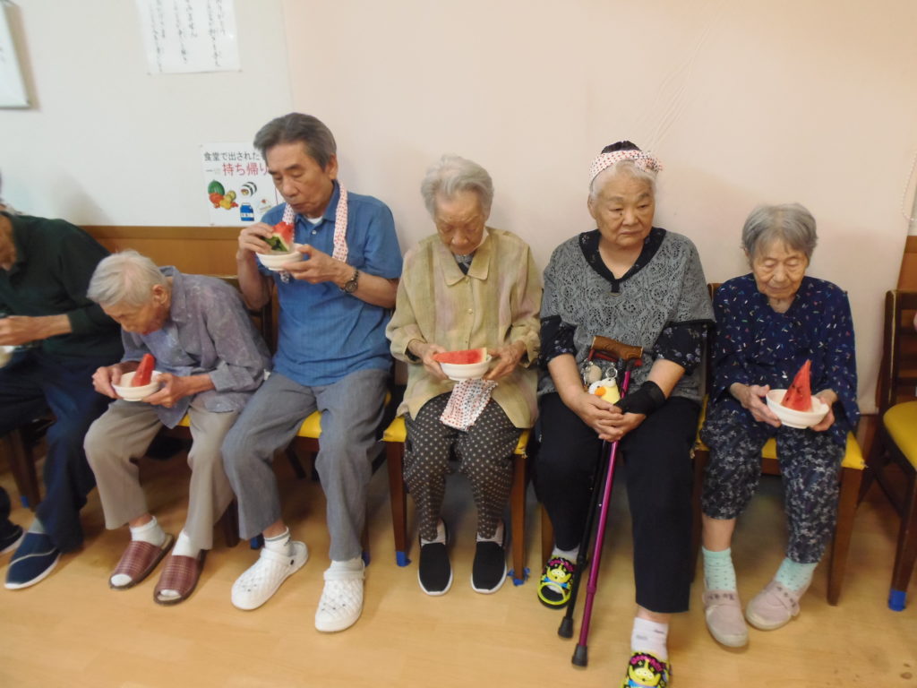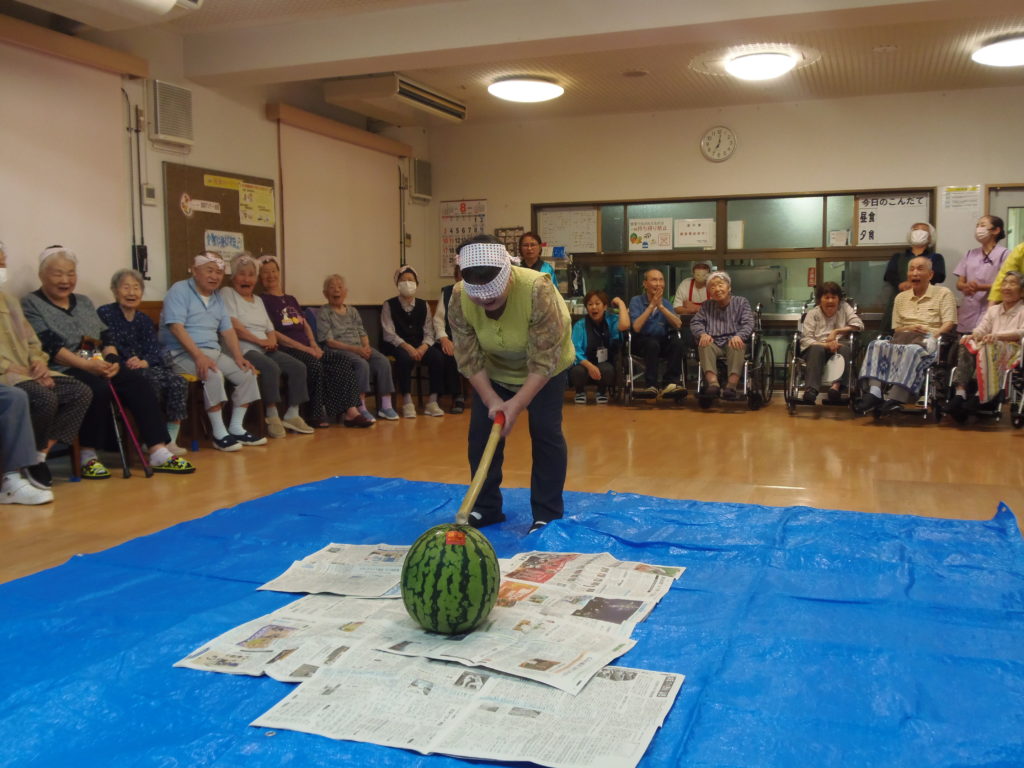 盆踊り、スイカ割りを行い皆さん喜ばれていました(*^▽^*)