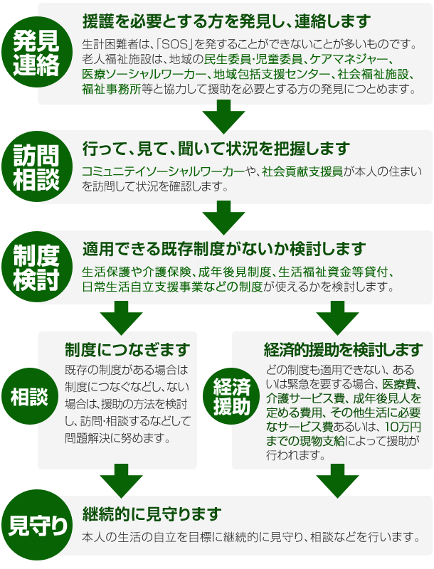 社会福祉法人吾妻福祉会は失業、虐待、DV、けがや病気などが原因で生活に困っている人たちに対し、寄り添って、訪問・相談を通じて必要な制度につなぐ、社会貢献事業(生計困難者レスキュー事業)を行っています。